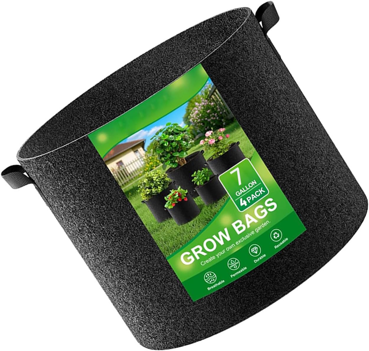 4x Breathable Plant Grow Bags Heavy Duty Nonwoven Materials Gardening Containers For Root Development Vegetable PlantingFeatures:The 4 pack fabric grow bags feature thickened nonwoven materials for superior breathability, promoting root development and rots in vegetables, or flowers.Designed with reinforced handles and durability stitching, these grow pots ensures easy mobility while maintaining structural integrity during seasonal temperature change.Ideal for gardeners plant enthusiasts seeking reusable, space efficient solution for balcony gardening indoor green spaces for organizing patios tomatoes, balcony, or decorative shrub in apartments, rooftops, and backyard gardens without heavy ceramic pots.Engineered with nonwoven fabric, these planting bags optimizes soil aeration and drainage while minimizing environmental impacts compared to alternatives.Specifications:Name: Felt planting potsComponent: NonwovenCraft: Cutting + sewingColor: Black Type:3 Gallon/5 Gallon/7 Gallon/10 Gallon/15 Gallon/20 GallonPackage Includes:Pack of 4 Thickened Fabric Grow BagsNote:1.Please allow 1-2cm errors due to manual measurement, make sure that you donot mind befores you order. 2.Due to the differences between different monitors, the picture may not reflect the actual color.Thanks for your understandings.
