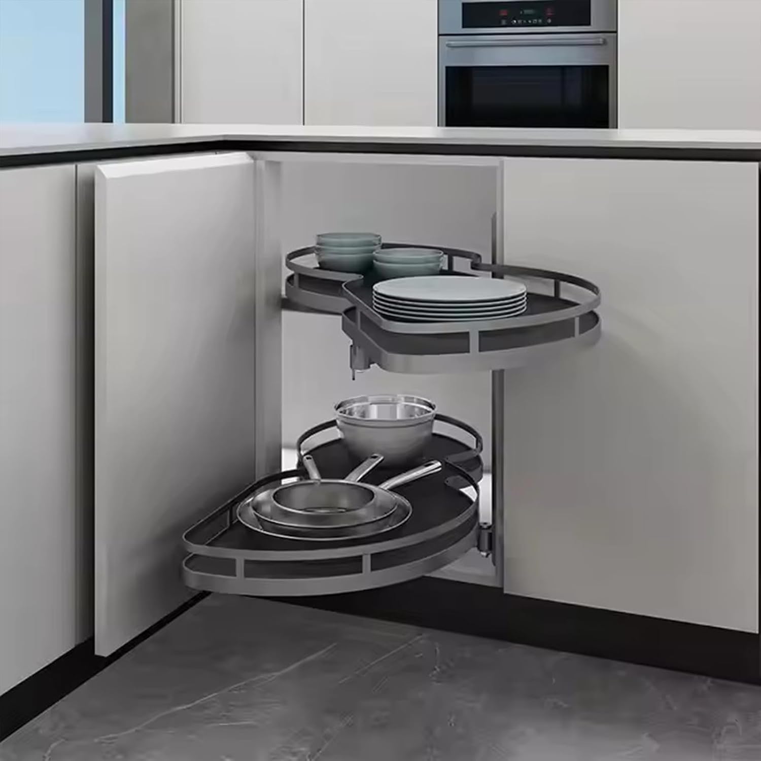 Introducing our innovative corner cabinet pull-out shelves, designed to maximize space and enhance efficiency in your kitchen. Say goodbye to wasted corner spaces and enjoy improved storage capacity while keeping your items easily accessible. This solution not only makes your life more convenient but also elevates the functionality of any kitchen. **Product Name:** Corner Kitchen Cabinet **Dimensions:** Available in 800 mm and 900 mm **Opening Direction:** Left/Right **Key Features:** 1. **Easy to Clean:** The pull-out basket is simple to detach, making cleaning a breeze. 2. **Smooth Operation:** Equipped with a silent damping guide, the pull-out mechanism operates effortlessly. 3. **Versatile Design:** Suitable for both left and right opening options, accommodating your kitchen layout. 4. **Adjustable Height:** Customize the height of the pull-out basket to fit your storage needs perfectly. **Helpful Tips:** - When measuring for your corner cabinet, be mindful of potential obstacles like water pipes and venting. - Allow a 1-3 cm variance in measurements due to manual measuring. - Ensure the door hinge thickness is appropriate to avoid any interference with normal usage. - This container requires minimal space, so please verify compatibility with your kitchen furniture before purchasing. Transform your kitchen nization with our corner cabinet pull-out shelves, where smart design meets practical use, making every meal preparation more efficient.
